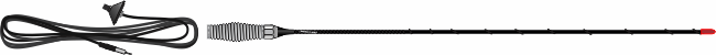 The Heliwhip are made with strong solid 6.25mm thick and tappered fibreglass and are coated with strong epoxy resin and then coated with polyolofin (rubber). The Heliwhip are great for off-road use as the pollyolofin coating will stand up to the strongest of trees and other obstacles one might accidentaly hit! |